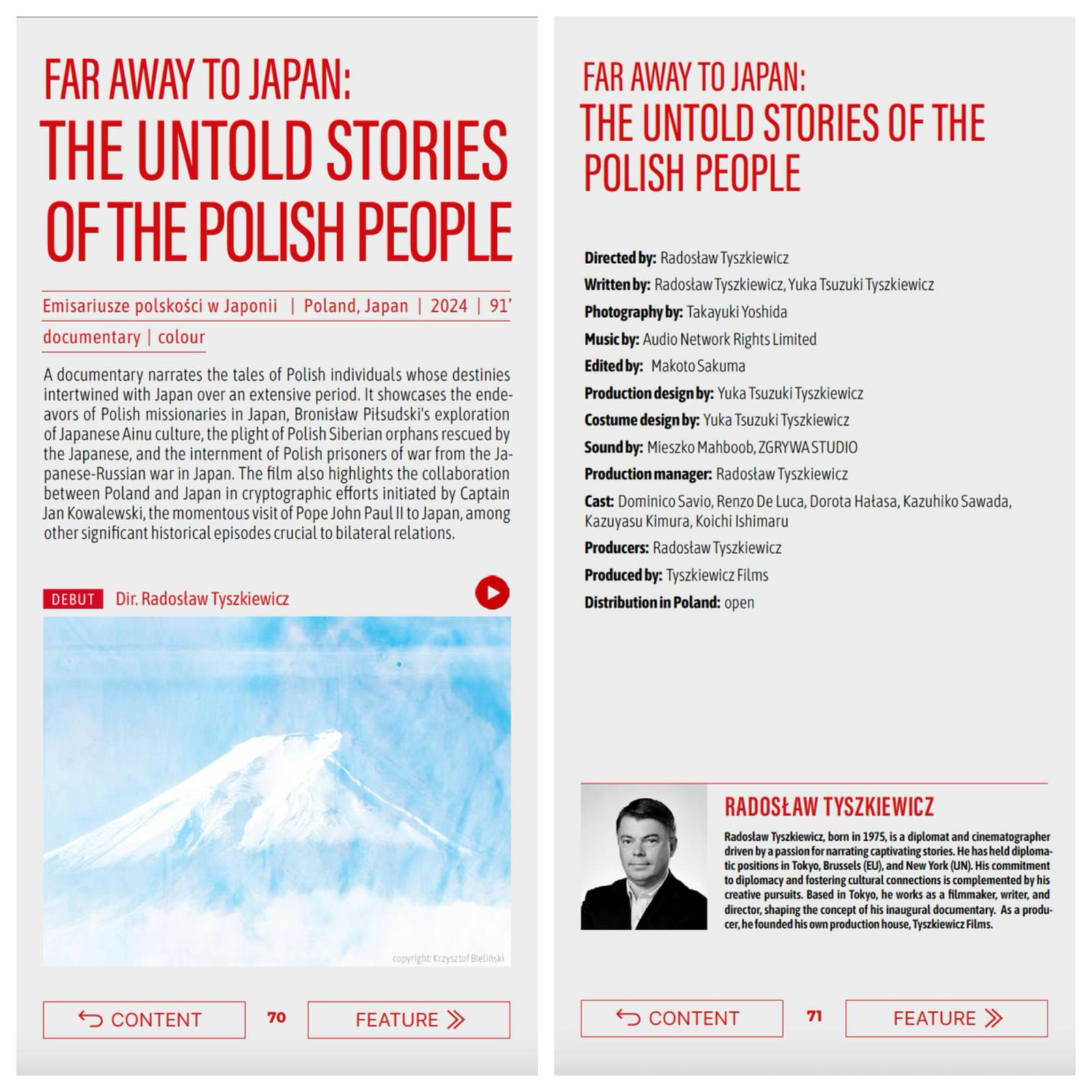 日本でのプロジェクト宣伝のために、メディアコンテンツやキャンペーンが必要ですか?私たちは、ドキュメンタリー映画、短編映画、広告スポットなどの制作を行っています。最新映画「遥かなる日本へ〜知られざるポーランド人の物語〜」は、東京で初公開され、日本国内で配信されています。