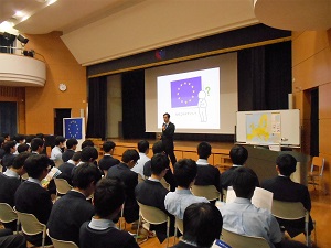 「EUがあなたの学校にやってくる」は、日本の高校生に欧州連合の価値観、歴史、組織についてもっと知ってもらうことを目的としたプロジェクトです。EU加盟国の代表者とのインタラクティブな授業を通じて、日本の高校生は国際問題においてEUが担う役割や文化の多様性などについて学びます。この取り組みにより、ヨーロッパのアイデンティティがより深い理解され、互いの文化交流をさらに活発にしていくことを目指しています。